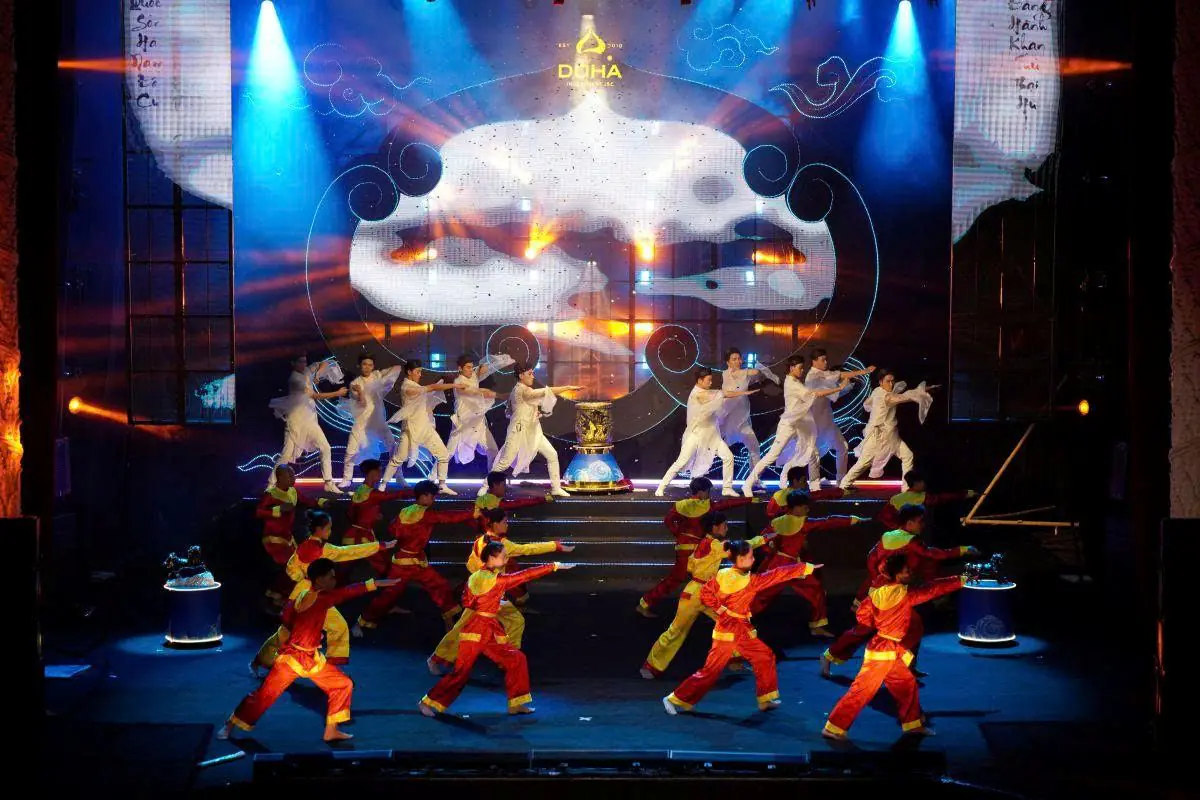 Điểm nhấn của chương trình là tiết mục võ nhạc Tây Sơn kết hợp múa cổ và hiệu ứng LED. Nhịp trống dồn dập, động tác dứt khoát tái hiện khí phách cha ông, đồng thời phản ánh tinh thần “son sắt” mà DOHA theo đuổi. Xen kẽ là màn múa sen dân gian đương đại, mang đến sự mềm mại, thanh khiết, gợi nhớ nét đẹp văn hóa truyền thống.