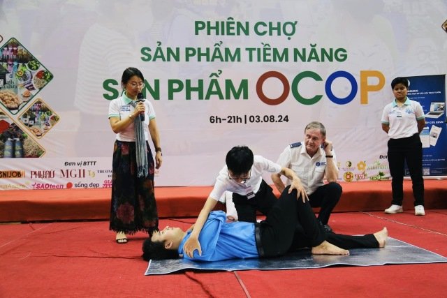 Ngoài việc kết nối nông sản Việt, phiên chợ năm nay còn có chương trình thực hành sơ cấp cứu miễn phí. Chuyên gia quốc tế từ SSVN trực tiếp hướng dẫn các kỹ năng sơ cấp cứu cơ bản nhằm phòng tránh các tình huống khẩn cấp, sơ cứu đột quỵ cho người già và người trẻ hay thức đêm, tắm khuya.