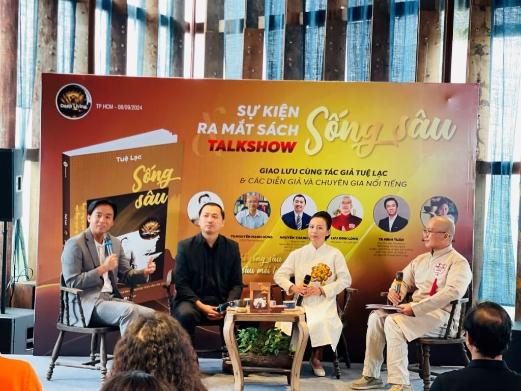 Tại không gian Vườn Trong Phố Boutique Event Space, TP. Thủ Đức, sự kiện ra mắt sách “Sống sâu” của tác giả Tuệ Lạc đã diễn ra cùng buổi tọa đàm chuyên đề về chủ đề cùng tên. Chương trình không chỉ là dịp để giới thiệu cuốn sách mà còn mang đến những chia sẻ sâu sắc từ các diễn giả nổi tiếng, giúp khán giả và bạn đọc có cái nhìn rõ hơn về cách sống sâu sắc và tìm kiếm bình an trong cuộc sống hiện đại.