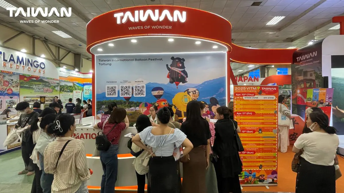 Hội chợ Du lịch Quốc tế Việt Nam (VITM) 2025 đã diễn ra sôi nổi từ ngày 10 đến 13 tháng 4 tại Trung tâm Hội chợ Triển lãm I.C.E Hà Nội. Trong khuôn khổ sự kiện, gian hàng Đài Loan gây ấn tượng mạnh với Logo nhận diện thương hiệu và dòng slogan mới (Wave of Wonder), cũng là chủ đạo thiết kế của gian hàng năm nay, mang đến sự kết hợp sáng tạo giữa văn hóa, ẩm thực, trải nghiệm tương tác độc đáo, thu hút đông đảo khách tham quan và để lại nhiều dấu ấn sâu sắc trong lòng công chúng Việt Nam.